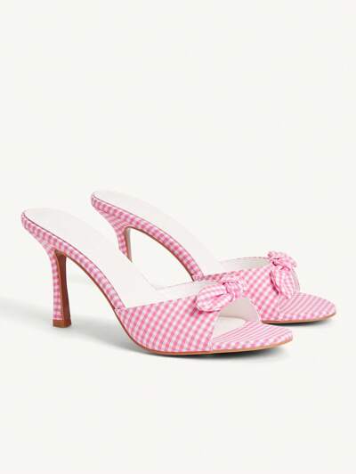 CUCCOO CHICEST Pink & White Plaid Bow Decor Stylish Cute Girly Summer Slip-On Mule High Heel Sandals For Casual Wear & Date-61%