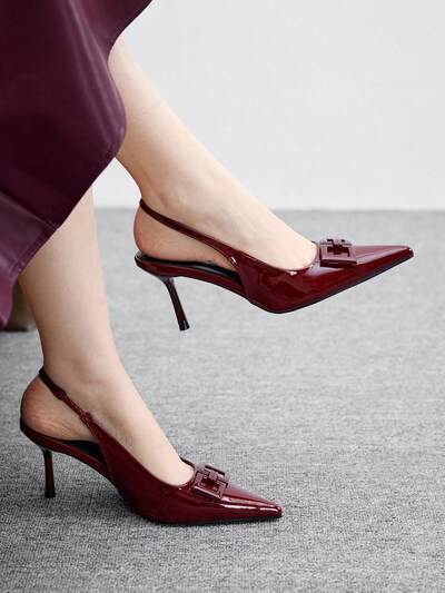 CUCCOO CHICEST Women Shoes Spring And Summer. New Pointed X Thin Heel High Heel Romantic Elegant Burgundy With Rhinestone Love Buckle Women's High Heel Shoes Dress Shoes Bridal Shoes Wine Season Collection For Valentine's Day Elegant Versatile Valentine's Day Elegant Shoes Wedding Shoes-69%