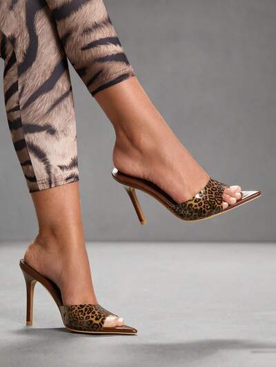 CUCCOO SZL Women Leopard Point Toe Heeled Sandals Valentine's Day