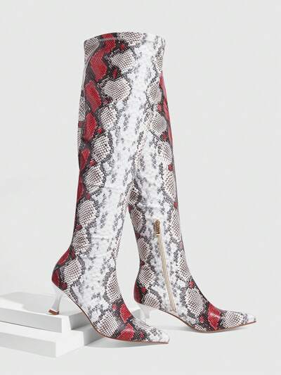 CUCCOO SZL Women's Classic Snake Skin Thigh High Boots, Fashion Super High Heel Pointed Toe Elegant Minimalist Stretch Over-The-Knee Boots Valentine's Day
