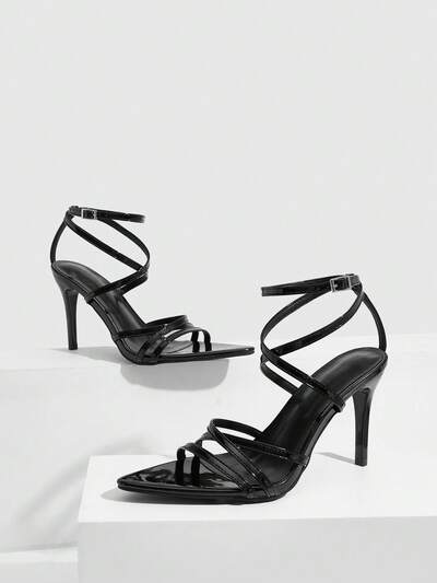 CUCCOO SZL Women Shoes Summer New Pointed Stiletto Roman Cross Strap Black Patent Leather Sexy Party Women's High Heels Sandals Prom Heels Summer Shoes