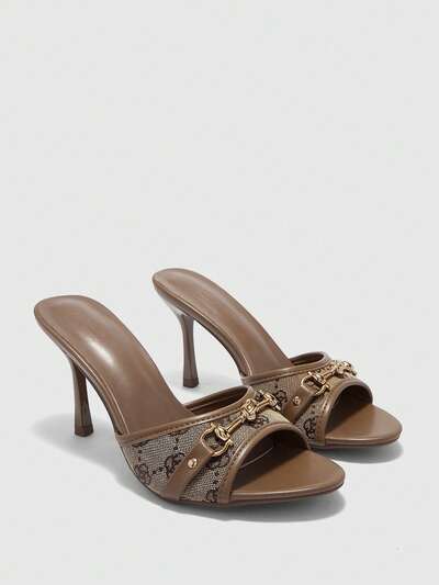 CUCCOO BIZCHIC Women Shoes Spring And Summer New Brown Metal Buckle Peep Toe Women's High-Heeled Sandals Slippers Fashionable And Comfortable Versatile Commuter Women's Sandals Peep Toe Sandals Summer Shoes