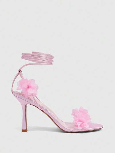 CUCCOO SZL Women Shoes Pink Satin Satin Bouquet Decoration Fashion Sexy Wedding Strap Round Toe High Heel Sandals Prom Heels Summer Shoes