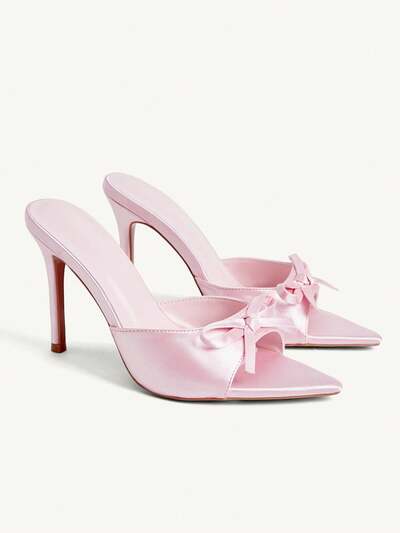 CUCCOO CHICEST Women Shoes Pink Satin Satin Spring And Summer Bow Element Fashion Sexy Pointed Stiletto Slippers Summer Shoes