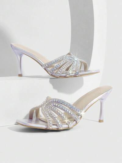 CUCCOO SZL Women's Fashion Square Toe Voltage Upper Rhinestone Decorative Stiletto Party Sandals Prom Heels Summer Shoes