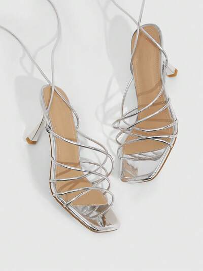 CUCCOO SZL Women's Square Toe Thin High Heel Silver Strap Sandals, Sexy Fashion Party Dress Heels, Summer Ladies High Heel Sandals Prom Heels Summer Shoes