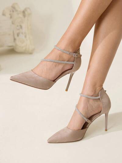 CUCCOO HITCHD Women's High Heel Pumps, Elegant & Luxurious Pointed Toe, Rhinestone Chain, Champagne Gold Satin, Suitable For Wedding Bride, Bridesmaid, Guest, Party