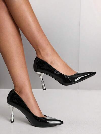 CUCCOO SZL Women Shoes Spring And Summer Pointed Thin Heel High Heel Slip-On 9cm Women's High Heel Shoes Elegant Patent Leather Solid Color Workplace Dress Comfortable Soft Sole Party Party Annual Meeting Versatile Women's Shoes