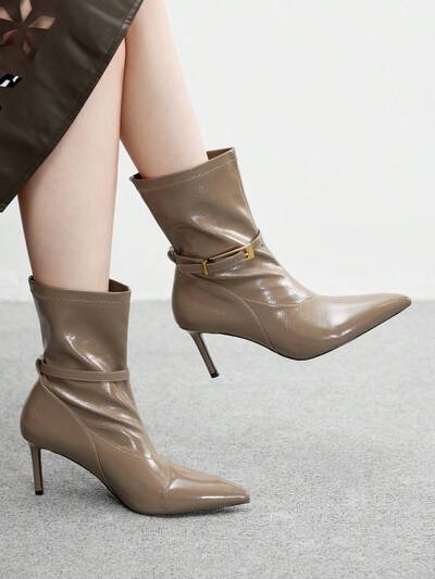 CUCCOO BIZCHIC Botas de tacón de aguja con hebilla de metal minimalista, botines elegantes de tacón alto con parches
