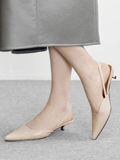CUCCOO BIZCHIC Tacones altos de punta cuadrada con abertura en la espalda de material brillante beige, adecuados para ir al trabajo, citas, reuniones, fiestas y otras ocasiones