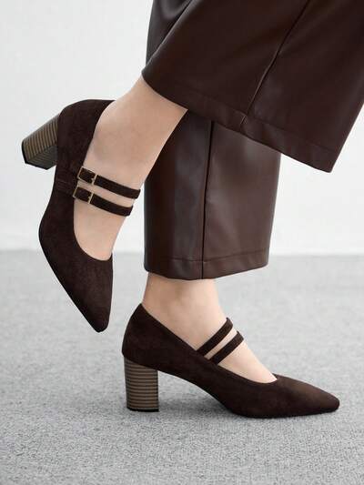 CUCCOO BIZCHIC Tacones altos tipo Mary Jane de mujer con puntera puntiaguda, color café, con estampado de veta de madera y tacón grueso, adecuados para ir al trabajo, citas, fiestas, vacaciones y compras