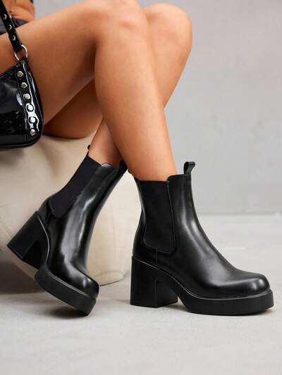 CUCCOO SZL Botas de plataforma de media pantorrilla cómodas y con tacón alto, resistentes al agua, de estilo vintage. Botas de tobillo elásticas y ajustadas para ir al trabajo, citas, fiestas y vacaciones de Navidad