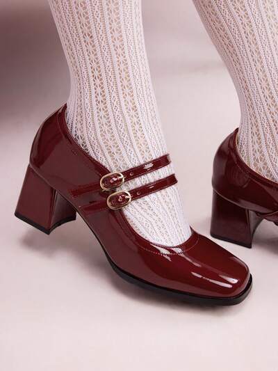 CUCCOO DOLLMOD Zapatos de mujer para el Día de San Valentín, tacón alto elegante de color rojo con punta cuadrada, zapatos de tacón para verano, graduación, baile de graduación, Navidad, bruja, otoño y Año Nuevo