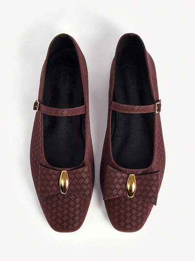 CUCCOO BIZCHIC Bailarinas de mujer con punta cuadrada, color chocolate, con hebilla metálica, tipo slip-on, zapatos cómodos y casuales tipo Mary Jane, adecuados para vestidos