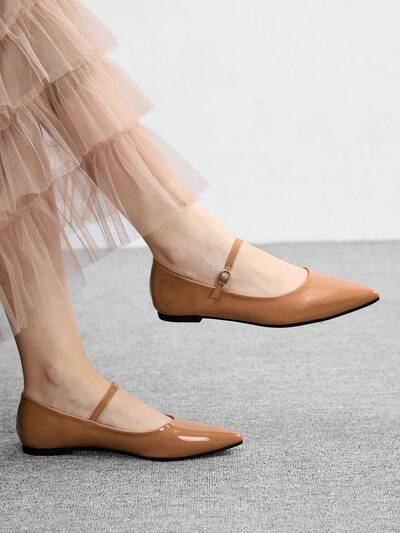 CUCCOO CHICEST Zapatos planos casuales y cómodos de punta puntiaguda con detalle de hebilla de unicolor, nuevos para primavera-otoño, zapatos de primavera, vacaciones de primavera, Pascua
