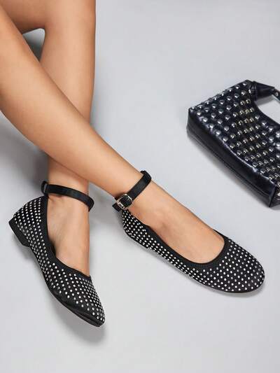CUCCOO BIZCHIC Zapatos de mujer con punta redonda, suela plana, correa cruzada elástica negra. Zapatos de mujer de suela plana para uso diario, cómodos y versátiles.