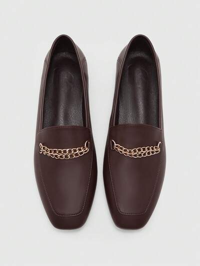 CUCCOO BIZCHIC Mocasines de mujer con punta cuadrada, tacón bajo, nuevo color café, cadena metálica cómoda y versátil, de fácil deslizamiento. Zapatos planos casuales de mujer color café, ligeros para el transporte diario