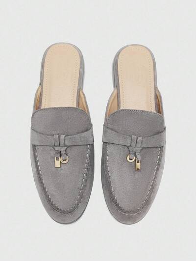 CUCCOO BIZCHIC Cómodas mulas de mujer gris con efecto resbalón, zapatos planos versátiles para uso diario, casual, de oficina y para caminar al aire libre