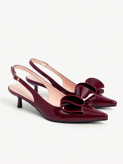 CUCCOO CHICEST Zapatos de mujer de piel de patente burdeos con decoración de origami tridimensional en forma de lazo, elegantes y versátiles, sandalias de tacón alto para bodas y primavera