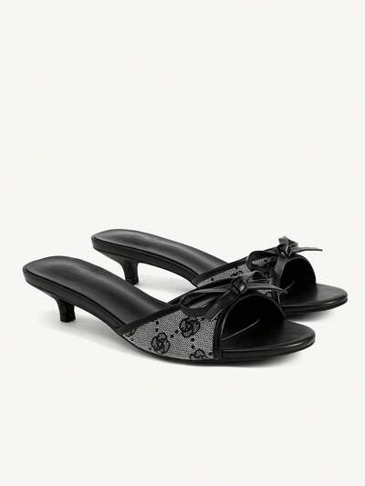 CUCCOO CHICEST Zapatos de mujer con diseño de contraste de color negro y blanco, estampado de rosas y elementos de diseño con lazo. Elegantes y cómodos para primavera y verano, con tacón de gatito y sandalias de verano