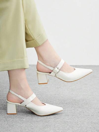 CUCCOO BIZCHIC Tacones altos de tira blanca con punta puntiaguda, tacón grueso, minimalistas y cómodos, apropiados para el trabajo, fiestas y ocasiones casuales