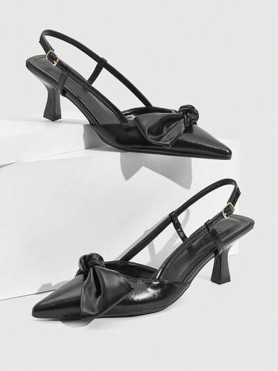 CUCCOO SZL Tacones altos de cuero con diseño de lazo en la punta para mujer, zapatos elegantes y sexy para vestidos formales, para fiestas, tardes de té, galas nocturnas, versátiles y de moda
