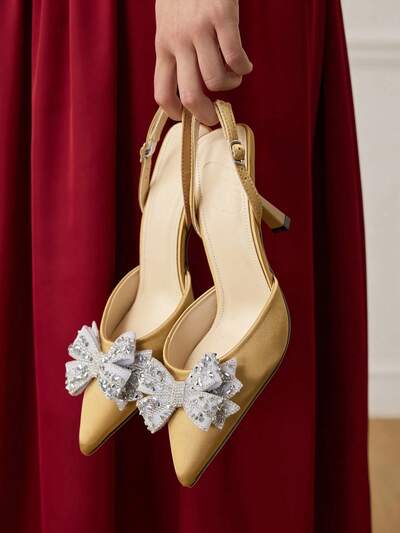 CUCCOO HITCHD Zapatos de mujer para primavera y verano, nuevos, con diseño de lazo grande y tridimensional, punta afilada, tacón de copa de vino, tacón medio, románticos y elegantes, sencillos, de satén negro, tacón alto, slingback, para citas, té de la tarde, San Valentín, uso elegante, banquete, vestido de noche, dulce y sexy, zapatos de boda, medias zapatillas, macarrón blanco, beige, azul, azul real, rosa, marrón, verde, burdeos, gris, rosa rojo, morado, amarillo, naranja, albaricoque, dorado, plateado, con rhinestones, talla grande, con flor de rhinestone, encaje, zapatos de boda, zapatos de primavera, zapatos de novia