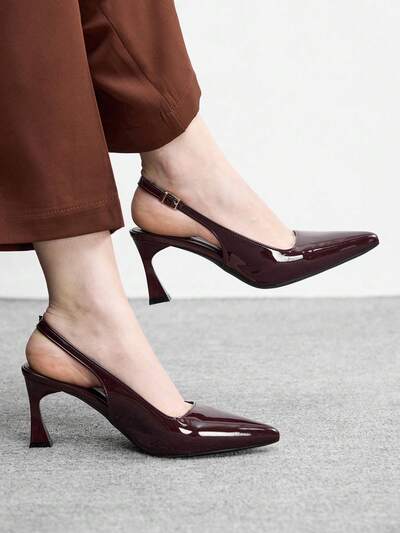 CUCCOO BIZCHIC Zapatos de mujer Zapatos de tacón alto y fino con punta en color burdeos, correa trasera. Zapatos de tacón alto para mujer, elegantes y cómodos, versátiles para uso diario y de negocios