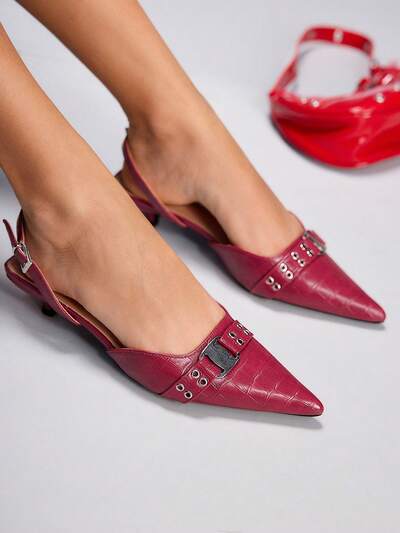 CUCCOO BIZCHIC Zapatos de mujer para primavera y otoño, nuevos zapatos de tacón medio puntiagudos con correa trasera burdeos, zapatos de tacón alto de mujer con correa, zapatos sencillos versátiles para uso diario y trabajo