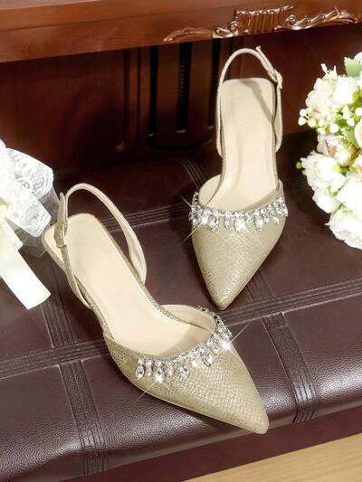 CUCCOO HITCHD Zapatos de tacón elegantes y de moda para fiesta con decoración de rhinestones para mujer