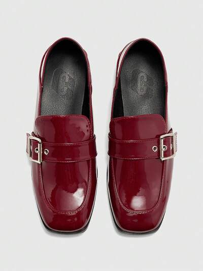 CUCCOO BIZCHIC Zapatos con tacón grueso retro de diseño con hebilla ajustable para mujer