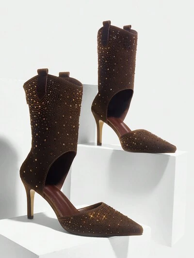 CUCCOO SZL Sandalias de tacón alto de stiletto con puntera puntiaguda y strass para mujer