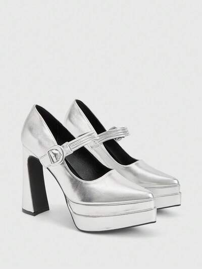CUCCOO LuxiPop Zapatos de tacón con plataforma elegantes y de moda para fiesta, de punta afilada y plateados, a prueba de agua