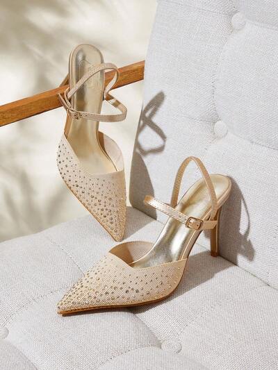 CUCCOO BASICS Tacones de aguja elegantes y sexys con puntera puntiaguda, de punto transpirable con rhinestones y sin espalda para mujer