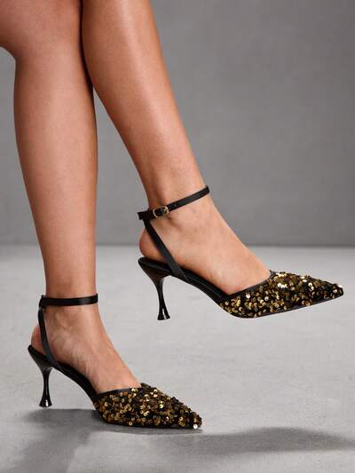 CUCCOO SZL Zapatos de mujer de tacón alto con diseño de lentejuelas brillantes para banquetes, fiestas y uso nocturno
