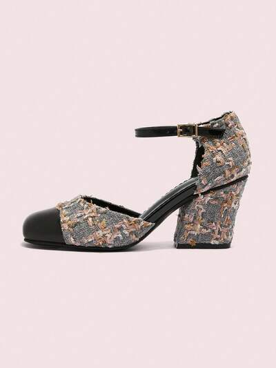 CUCCOO CHICEST Zapatos de tacón alto de 7 cm con punta cuadrada, hebilla de correa, tweed, estilo francés elegante para primavera, ideal para Semana Santa y vacaciones de primavera