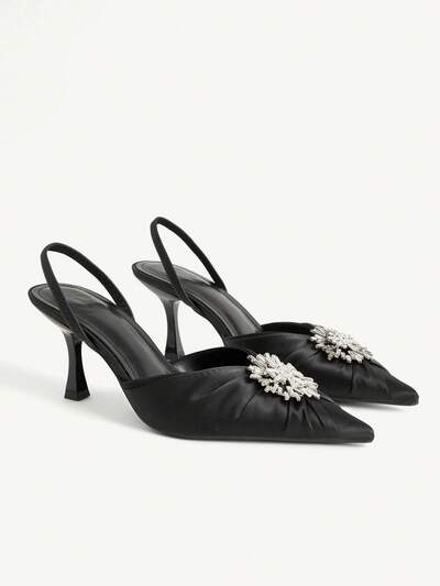 CUCCOO CHICEST 1 par de tacones altos de punta fina con cristales negros clásicos para mujeres