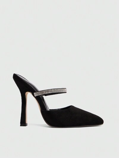 CUCCOO SZL Elegantes y sexys zapatos de tacón alto de punta puntiaguda con tiras elásticas y decoración de rhinestones para mujer. Versátiles para fiestas y citas nocturnas con un toque navideño y de Año Nuevo para el otoño y el invierno.
