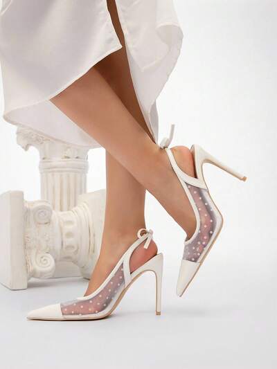 CUCCOO CHICEST Zapatos de tacón alto con punta fina para mujer, elegantes, románticos y sexy, de malla blanca y piel sintética, con diseño de lazo y lunares, adecuados para el té de la tarde, citas, fiestas, San Valentín y fiestas de cumpleaños