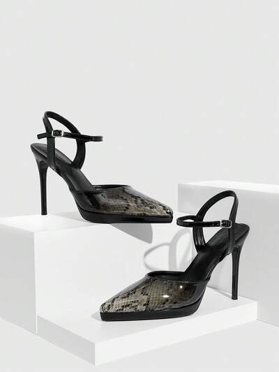 CUCCOO SZL Zapatos de mujer de tacón alto y fino con punta, con patrón de serpiente y cambio de color gradual, con correa de tobillo y correa trasera elevadora. Zapatos de mujer de tacón alto y sencillos para fiesta y banquete, de moda y sexy.