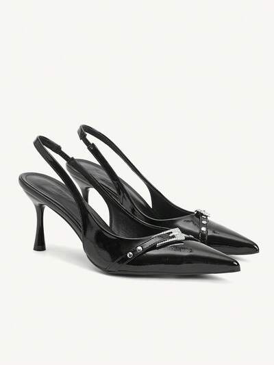 CUCCOO BIZCHIC Tacones altos de moda versátiles de uso diario con decoración de metal en la punta para mujer
