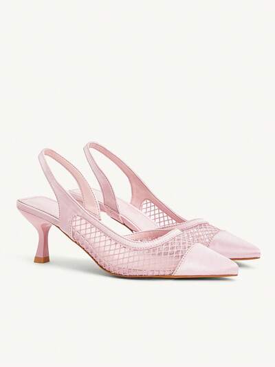 CUCCOO CHICEST Zapatos de tacón de aguja de punta fina para mujer, tacón medio, elegantes, dulces, románticos, minimalistas, cómodos, de malla rosa pálido, de piel sintética y malla, de slip-on, tacones altos, adecuados para el té de la tarde, citas, fiestas, trabajo, ocasiones formales, versátiles, Día de San Valentín