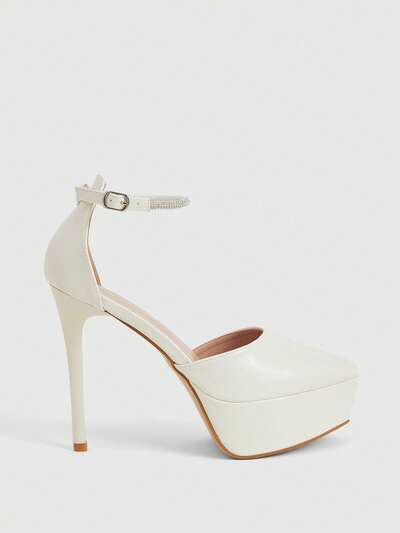 CUCCOO LuxiPop Nuevos tacones altos de plataforma de primavera/verano con diseño de correa con strass, puntera puntiaguda, impermeable, sexy y elegante, de material de PU blanco, adecuados para discoteca, ocasiones formales, citas, té de la tarde, fiestas, Día de San Valentín