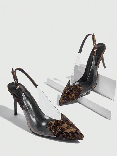 CUCCOO SZL Zapatos de tacón alto de uso casual con punta puntiaguda y detalles de estampado de leopardo, para el Día de San Valentín