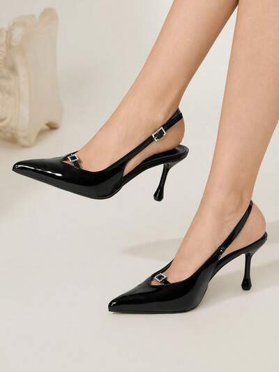 CUCCOO CHICEST Tacones de 7,2 cm con punta afilada, correa con hebilla, tacones altos de cuero brillante, estilo para ir y venir, múltiples colores, adecuados para uso diario y citas