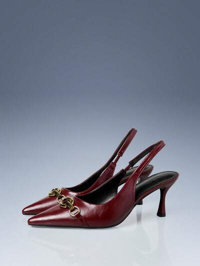 CUCCOO SZL Tacones altos de punta puntiaguda con hebilla para mujer, color borgoña