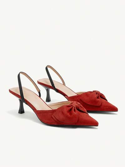 CUCCOO CHICEST Tacones altos de mujer con diseño de lazo, puntera afilada y tacón bajo, elegantes y cómodos, apropiados para uso diario, festivales y fiestas, con un toque navideño y de Año Nuevo para otoño e invierno