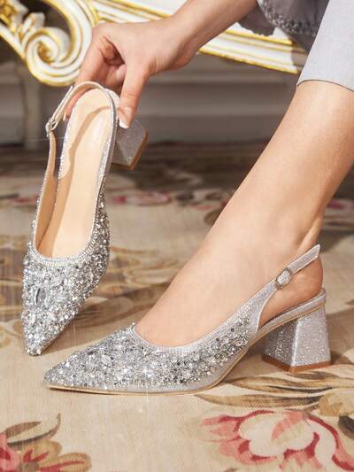 CUCCOO CHICEST Zapatos planos de tiras de material con brillo, con puntera puntiaguda, tacón de aguja y slingback, cómodos para uso diario y fiestas, de moda para mujer