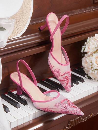 CUCCOO HITCHD Zapatos de tacón alto con punta puntiaguda y tira trasera bordados de estilo retro para mujer