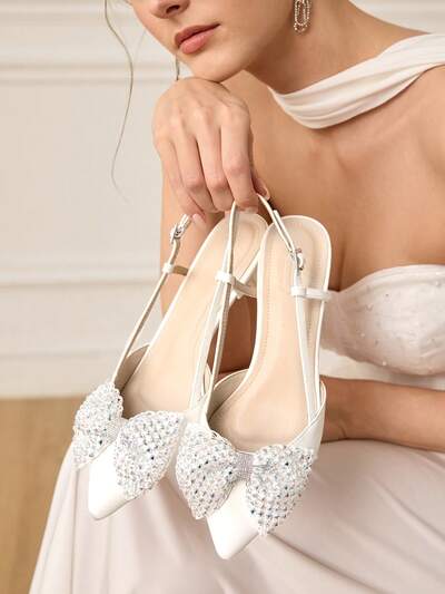 CUCCOO HITCHD Zapatos de tacón con decoración de lazo de cristal elegantes y de moda para fiestas